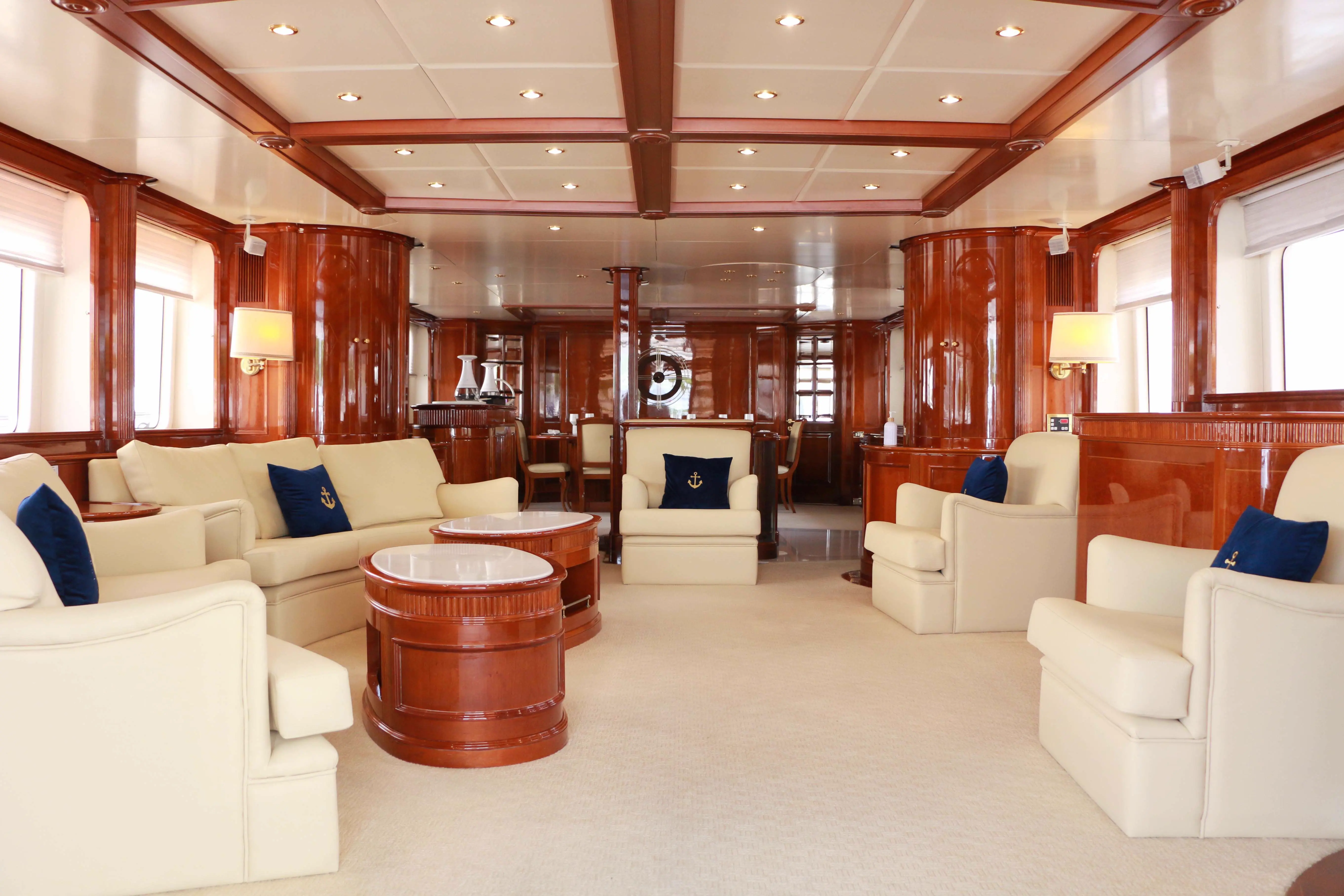 - Formal Dining Area: Stylish indoor dining space with seamless service from the onboard galley