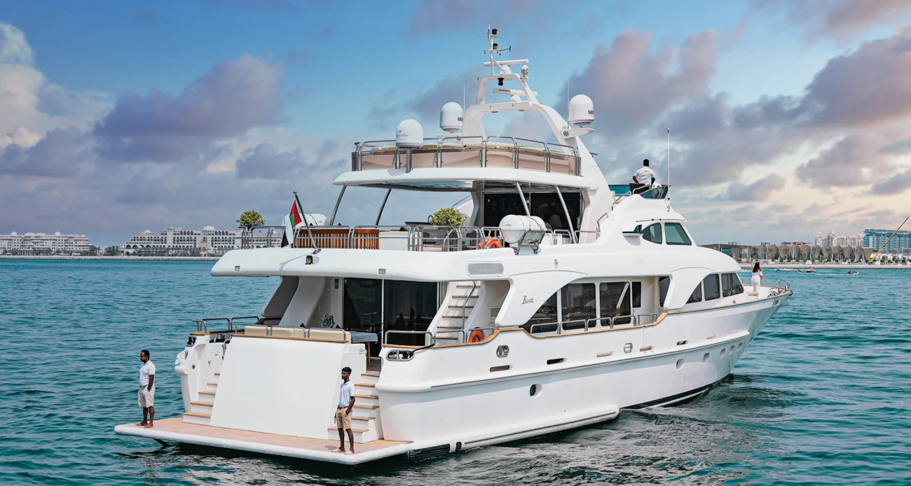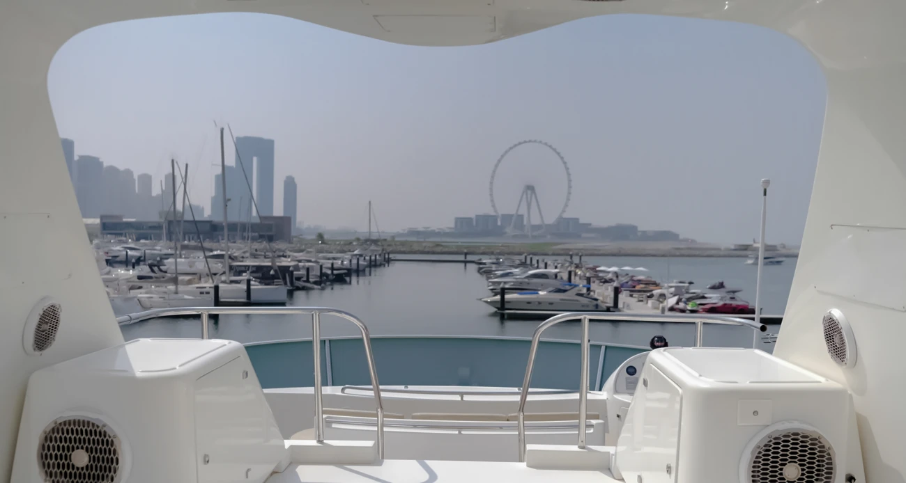 - Grand Flybridge: Spectacular entertainment space featuring jacuzzi, full bar, multiple lounging zones, BBQ station, and panoramic dining area with breathtaking Dubai skyline views.
