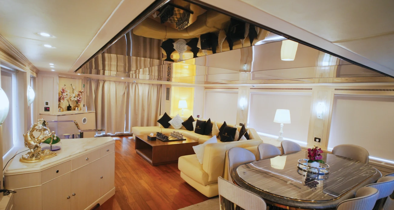 - Superior Amenities: Smart climate control, high-speed WiFi, professional galley with wine vault, magnificent salon with floor-to-ceiling windows, and advanced lighting systems.