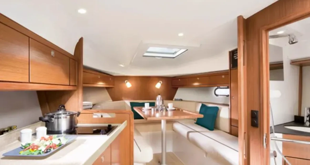 The Pulsar 33-2 features a well-appointed cabin on the lower deck, ensuring a comfortable retreat during your journey. Equipped with a modern washroom, a Bluetooth music system for your favorite tunes, and manned by a professional captain and two attentive crew members, every detail is curated for your comfort and enjoyment.
