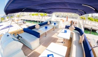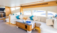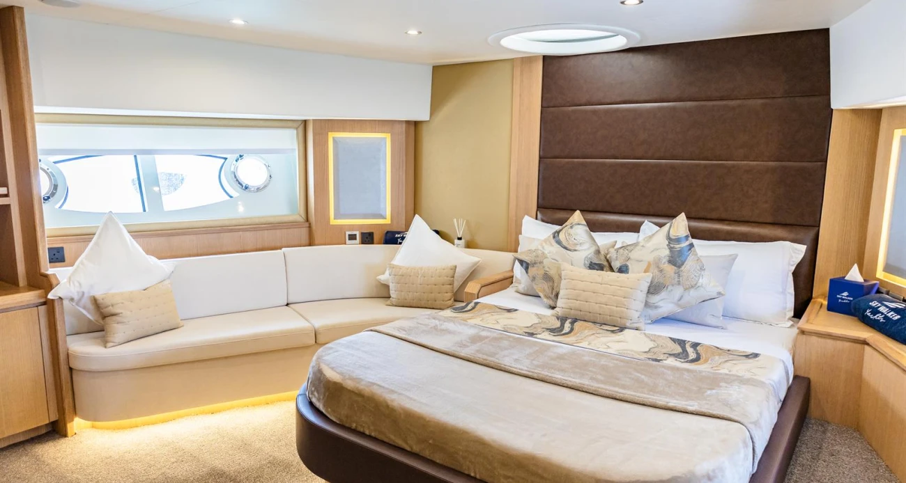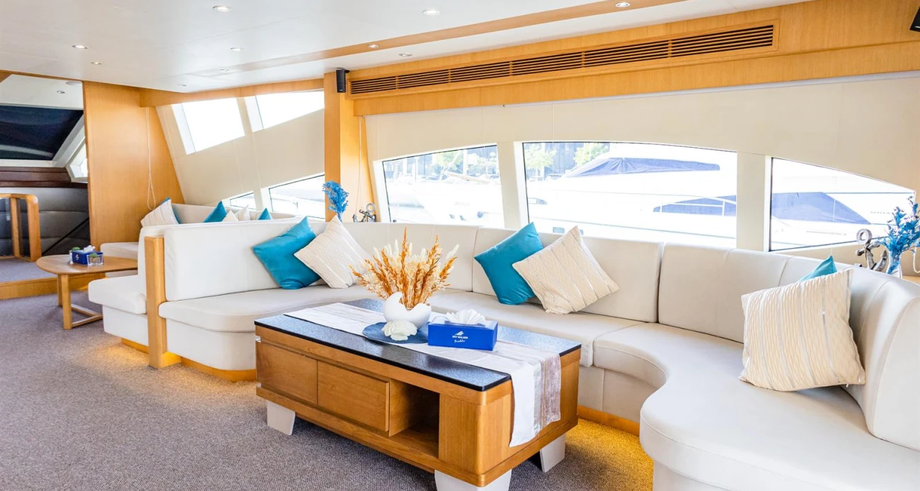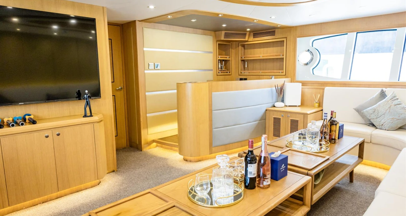 - Spacious Design: The yacht features an open-plan saloon and flybridge, providing ample space for socializing and relaxation.