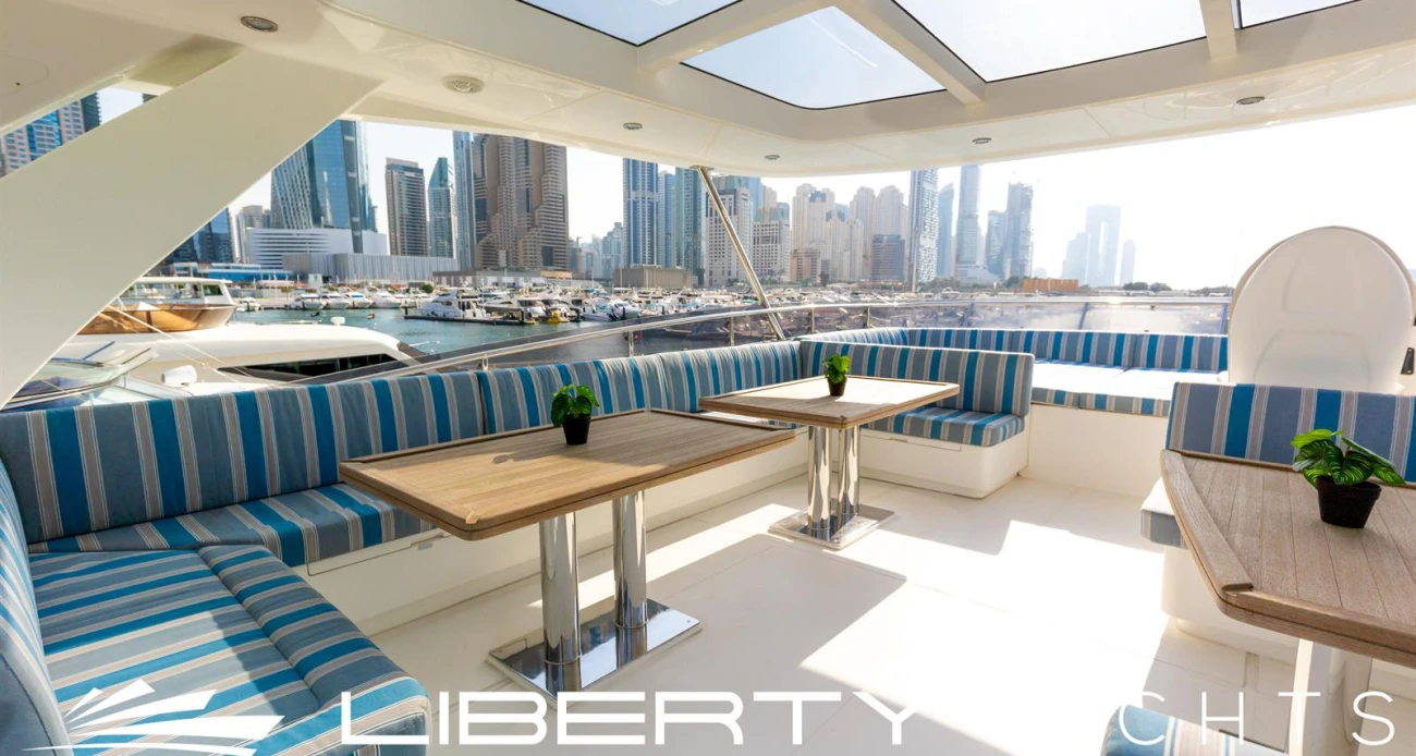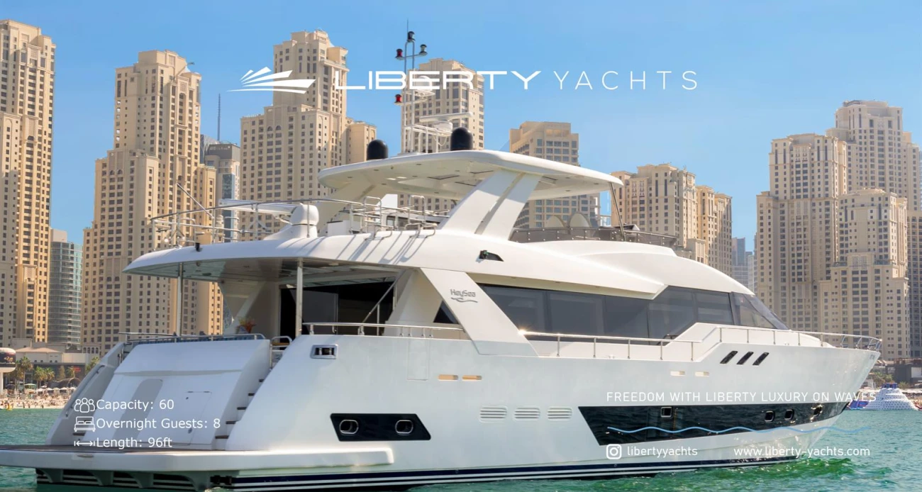 Set sail on Sky 96, a sleek and stylish 96-foot luxury yacht designed for both day charters and overnight escapes. With a capacity of 60 guests for cruising and accommodations for 8 overnight guests, Sky 96 is perfect for private parties, corporate events, and weekend getaways. This modern yacht boasts elegant interiors, spacious decks, and top-tier amenities, ensuring a seamless blend of comfort and adventure. Whether you're planning a sunset cruise, a lively celebration, or a tranquil retreat on the water, Sky 96 delivers an unforgettable yachting experience.