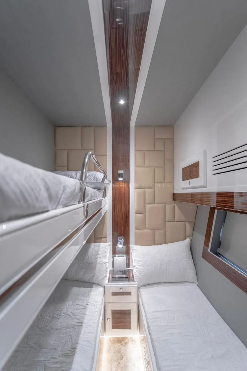 - Cabins: 4 spacious cabins including a master suite and guest rooms, with 3 bathrooms